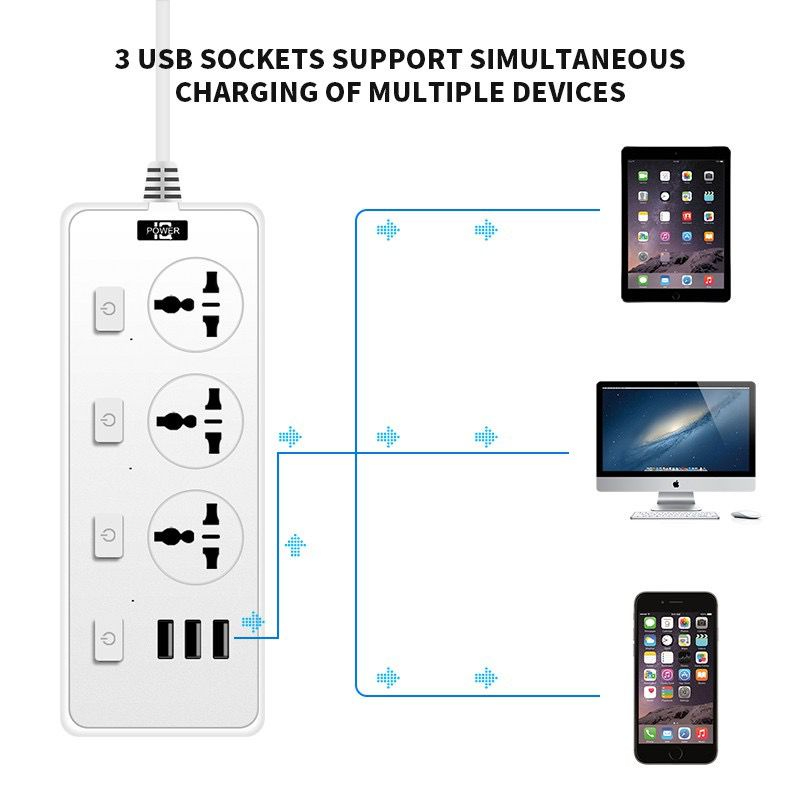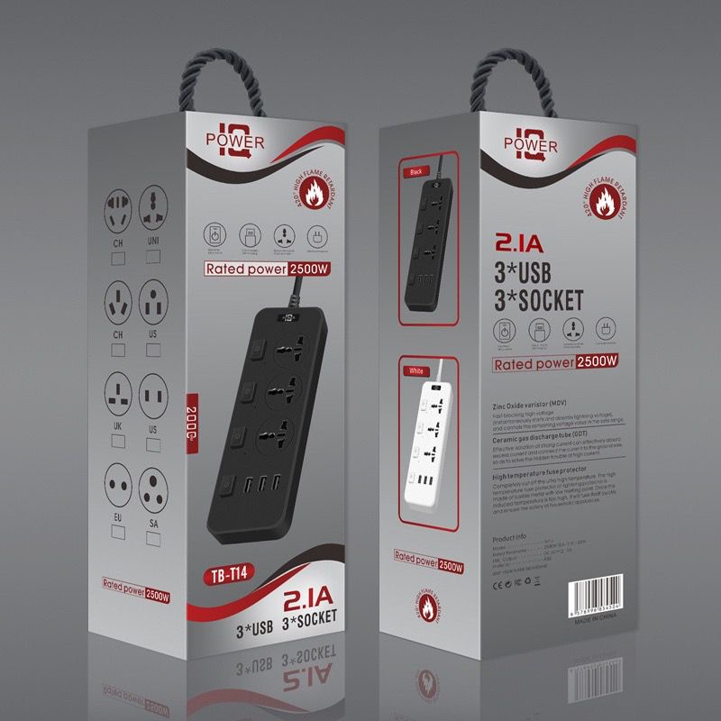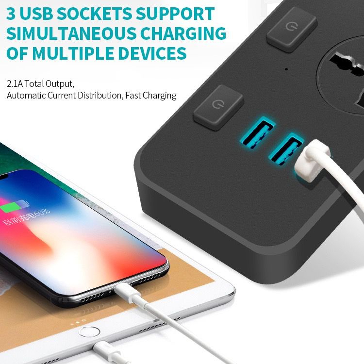 ?Bundle of 2?UK Multi Extension Plug Power Strip 2500W With USB Charger Output 3.1A Charger