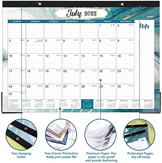 HIGH QUALITY THICK PAPER -The paper of this 2022-2023 desk calendar is thick enough to resist the damage of light and air. Prevent ink seepage and scratch resistance, which will provide you a smooth writing experience. Moreover, the perforated pages of the desk calendar can be used for easy removal.