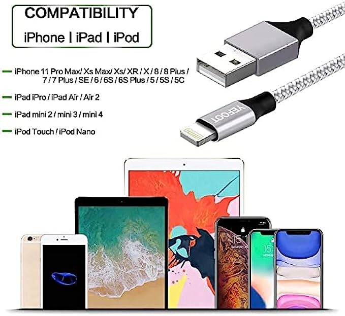 • ➤Perfect Compatibility: iPhone Charger Cable for iPhone iphone 12Pro Max/12Pro/12/xr /iphone xs / xs max /iphone x/ iphone 10/ iphone 11/iphone11 pro/iphone 11 pro Max, iPhone 8 / 8 Plus, iPhone 7 / 7 Plus, iPhone 6s Plus / 6s / 6 Plus / 6, iPhone 5s / 5c / 5 / SE, iPad / iPod and more.