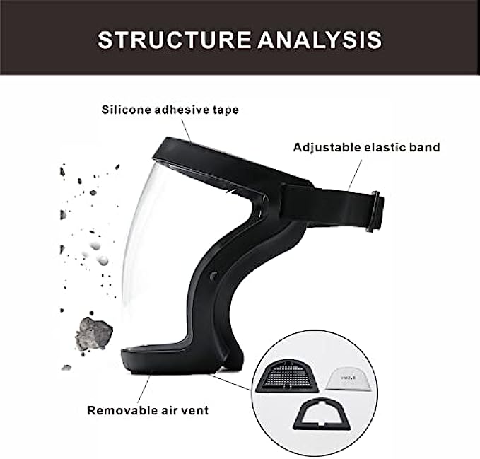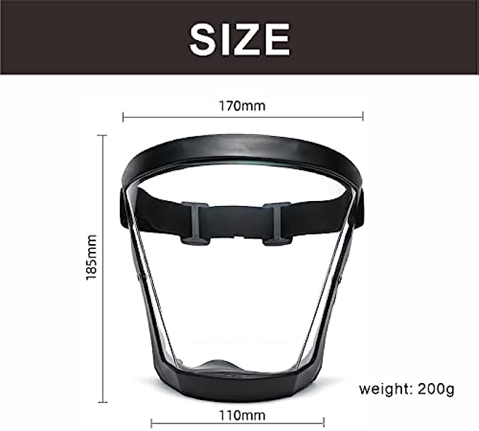 • [SUPER CLEAR ANTI-FOG MATERIAL]: Facial protection equipment with anti-fog material, can resist fog after your long-term use. 100% transparent material allows you to see the whole face, convenient for daily communication with people.