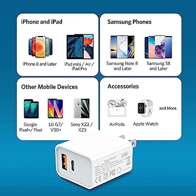 • Universal Compatation: Designed for iPhone 13/12/11 Pro/12 Pro Max/iPhone 8 and later. The USB charging adapter is compatible with iPhone, iPad, iPod, smartphone, MP3 / MP4 players, play equipment, GPS devices, PC tablet, Google Nexus Tablet, Samsung Galaxy Tab and other digital devices compatible